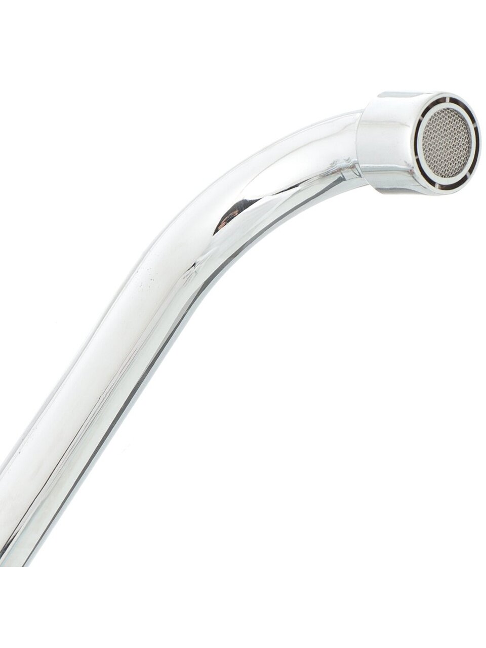 Этот смеситель часто выбирают для обновления интерьера в стиле ретро — округлая форма и хром сочетаются с разными типами отделки. Если важно, чем отличается этот вариант от других: длинный излив (31 см) и двухвентильное управление обеспечивают комфорт при эксплуатации и экономию воды.