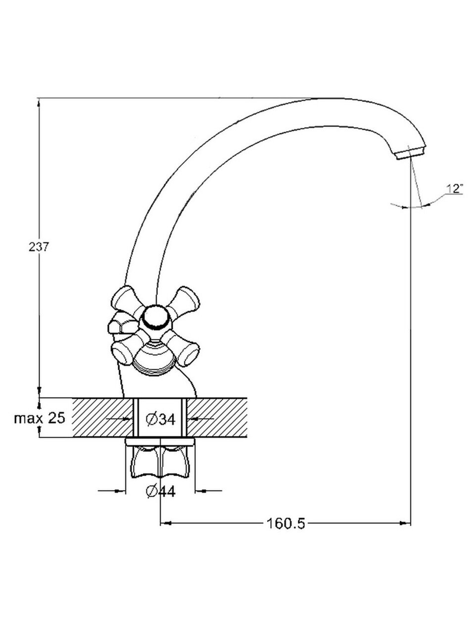 Для установки требуется одно отверстие диаметром 35 мм. Смеситель комплектуется гибкой подводкой и крепится гайкой, что облегчает монтаж.