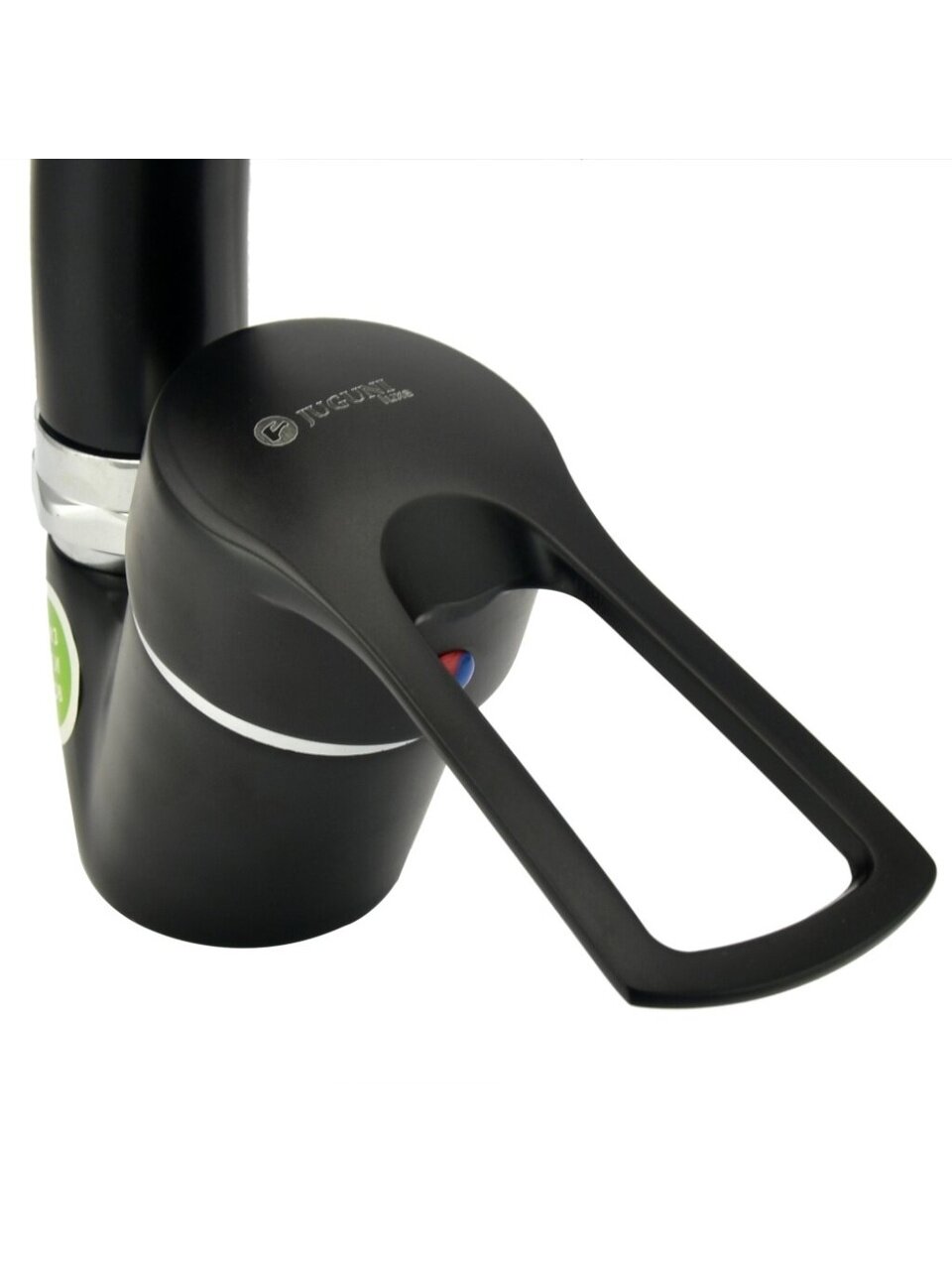 Смеситель Juguni с керамическим картриджем — это оптимальный выбор для тех, кто ищет надежный кухонный смеситель с современным дизайном. Благодаря поворотному изливу высотой 18,5 см и длиной 21 см, вы сможете удобно наполнять даже высокие кастрюли или мыть крупную посуду. Матовый черный цвет и круглая форма делают этот смеситель трендовым элементом современной кухни.