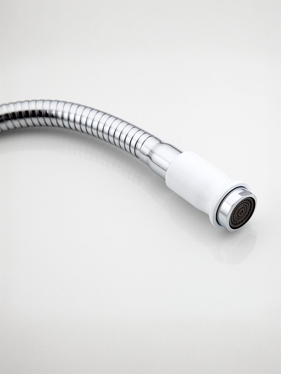 Смеситель для кухни Frud R43127-7 с гибким изливом — современное решение, которое сочетает стиль и функциональность. Благодаря изливу длиной 19,5 см и высоте 17 см, удобно мыть большие кастрюли, наполнять бутылки или вазы. Белый цвет корпуса гармонирует с любой кухней, а глянцевая поверхность легко очищается от загрязнений.