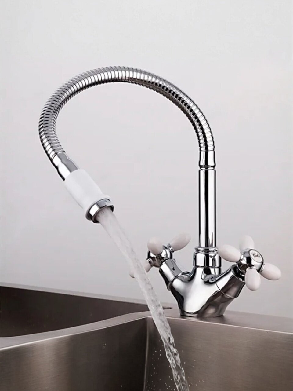 Двухвентильное управление с керамической кран-буксой обеспечивает точную настройку температуры и защищает от протечек. Часто спрашивают: «Как выбрать смеситель для кухни с гибким изливом?» — обратите внимание на материал корпуса: силумин устойчив к коррозии, а гибкая подводка и стандарт подключения 1/2" позволяют быстро установить смеситель без специальных навыков. В отличие от моделей с пластиковым корпусом, Frud прослужит дольше и не потускнеет со временем.
