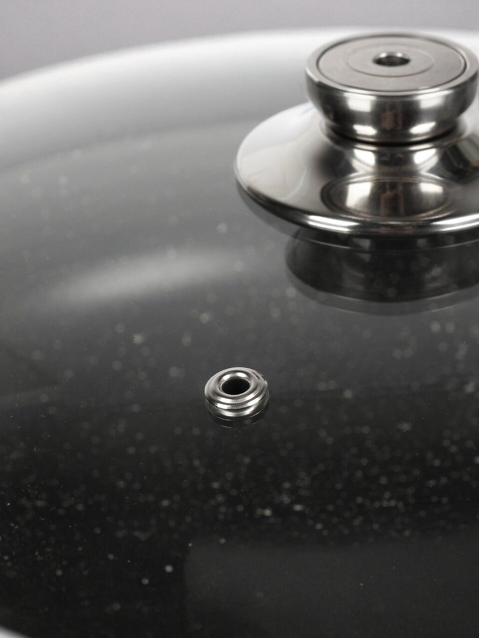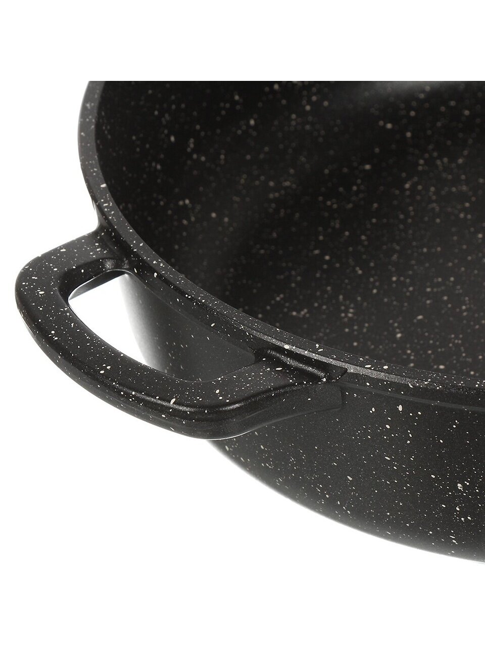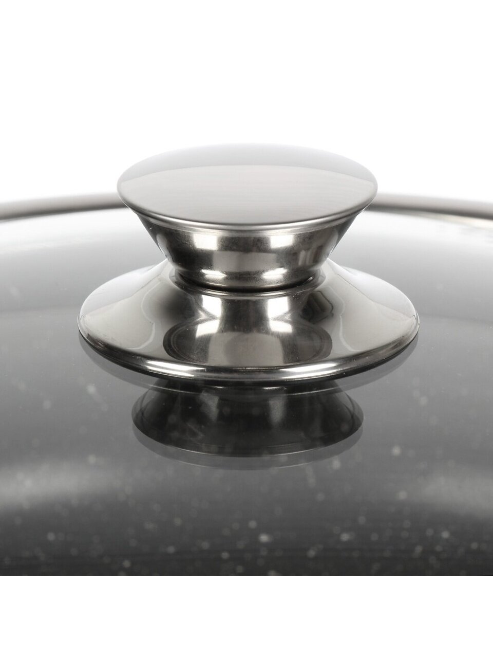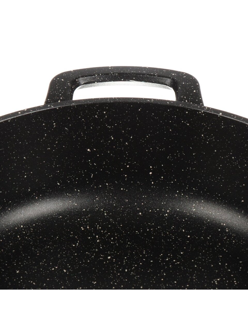 Литая алюминиевая жаровня с антипригарным покрытием подходит для газовых, электрических и стеклокерамических плит. Жаровни с цельнолитыми ручками можно использовать в духовом шкафу. В жаровне можно готовить разные продукты: мясо, овощи, грибы и т.д. Также в ней можно приготовить плов рагу, жаркое или даже испечь пирог. «Гранит». Коллекция посуды с улучшенным четырехслойным антипригарным покрытием. Дополнительный слой с мраморным эффектом увеличивает износостойкость и создает оригинальный оттенок черного мрамора. Литой пищевой алюминий не имеет канцерогенных веществ и посторонних запахов. Толстые стенки и дно обеспечивают равномерное приготовление блюда. Посуда не деформируется при нагревании. Антипригарное покрытие на водной основе без вредных химических соединений: экологично и безопасно. Мелкие царапины не влияют на безопасность антипригарного покрытия. В жаровне можно готовить без масла, ее легко мыть.