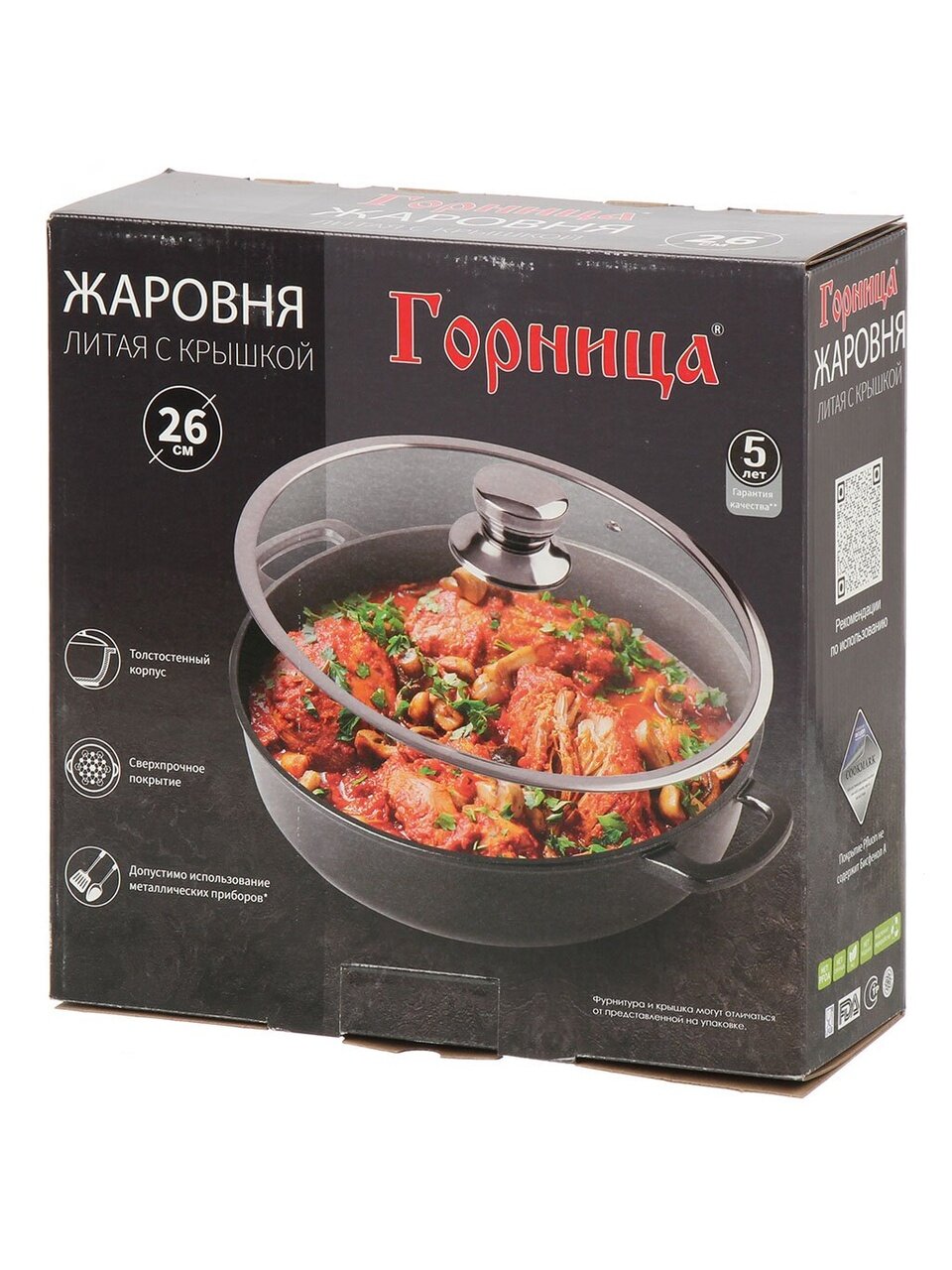 Вы можете приобрести «Жаровня алюминий, 26 см, 3 л, антипригарное покрытие, Горница, Гранит, ж2611аг, с крышкой» и другие товары в нашем интернет-магазине в Ставрополе по низким ценам и с бесплатным самовывозом.