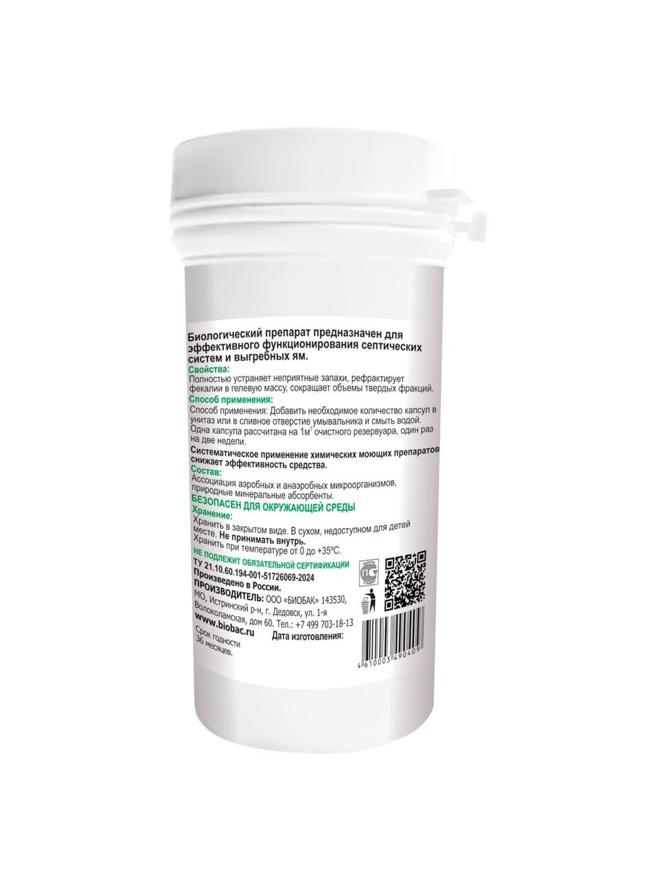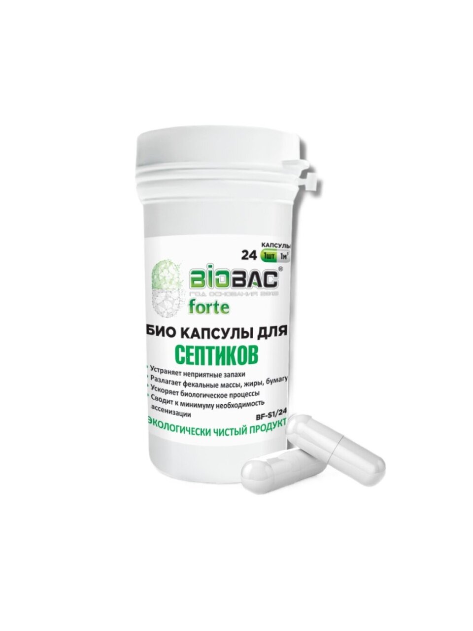 Вы можете приобрести «Биосостав для септиков, Биобак, Концентрат бактерий в капсулах, 24 капсулы, BF-S1/24» и другие товары в нашем интернет-магазине в Тамбове по низким ценам и с бесплатным самовывозом.