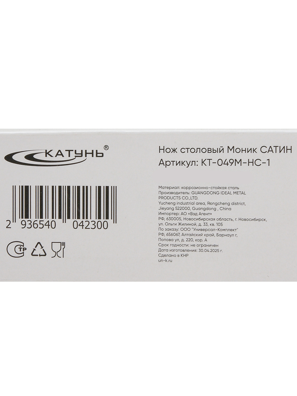 Столовый нож Катунь Моник Сатин из нержавеющей стали — это сочетание современного дизайна, эргономичной формы и высокой износостойкости. Благодаря цельнометаллической ручке и отсутствию покрытия, нож не боится коррозии и легко очищается даже после интенсивного использования. Если вы ищете, какой столовый нож выбрать для сервировки на каждый день или для дачи, обратите внимание на прочность и простоту ухода: модель КТ-049М-НС-1 подходит для мытья в посудомоечной машине и не требует особого обслуживания.