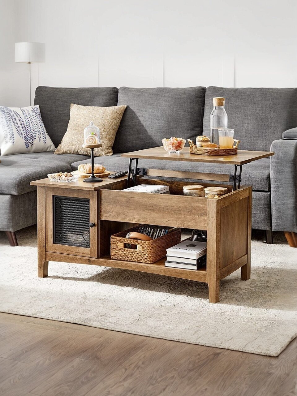 Создание интерьера, отвечающего всем требованиям дизайна, требует серьезного подхода. Особенно нужно постараться, когда количество свободной площади ограничено. Решением становятся предметы, способные выполнять несколько функций. Журнальный стол с подъемной столешницей как раз относится к этой категории. Стол поможет создать многофункциональное пространство в вашем доме! Верхняя часть превращается в поверхность, на которой вы можете работать на ноутбуке или наслаждаться вкусной едой, смотря телевизор, не вставая при этом с дивана.