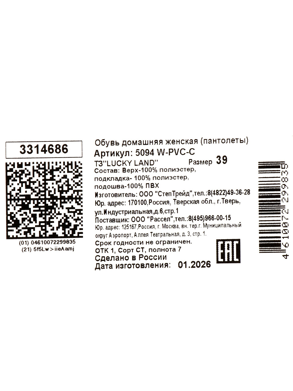 Вы можете приобрести «Тапки для женщин, полиэстер, в ассортименте, р. 39, закрытые, Lucky Land, 5094W-PVC-C» и другие товары в нашем интернет-магазине в Таганроге по низким ценам и с бесплатным самовывозом.