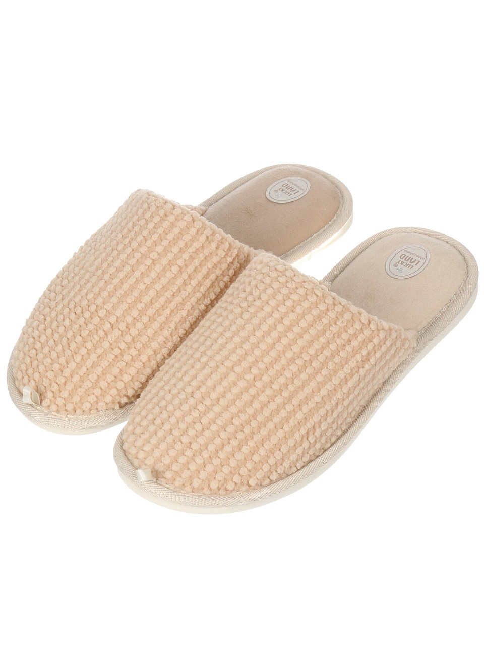 Тапки выполнены из прочного полиэстера с подошвой из ПВХ, что обеспечивает устойчивость к износу и легкость ухода. Материалы подходят для демисезонного использования, не теряют форму после стирки.