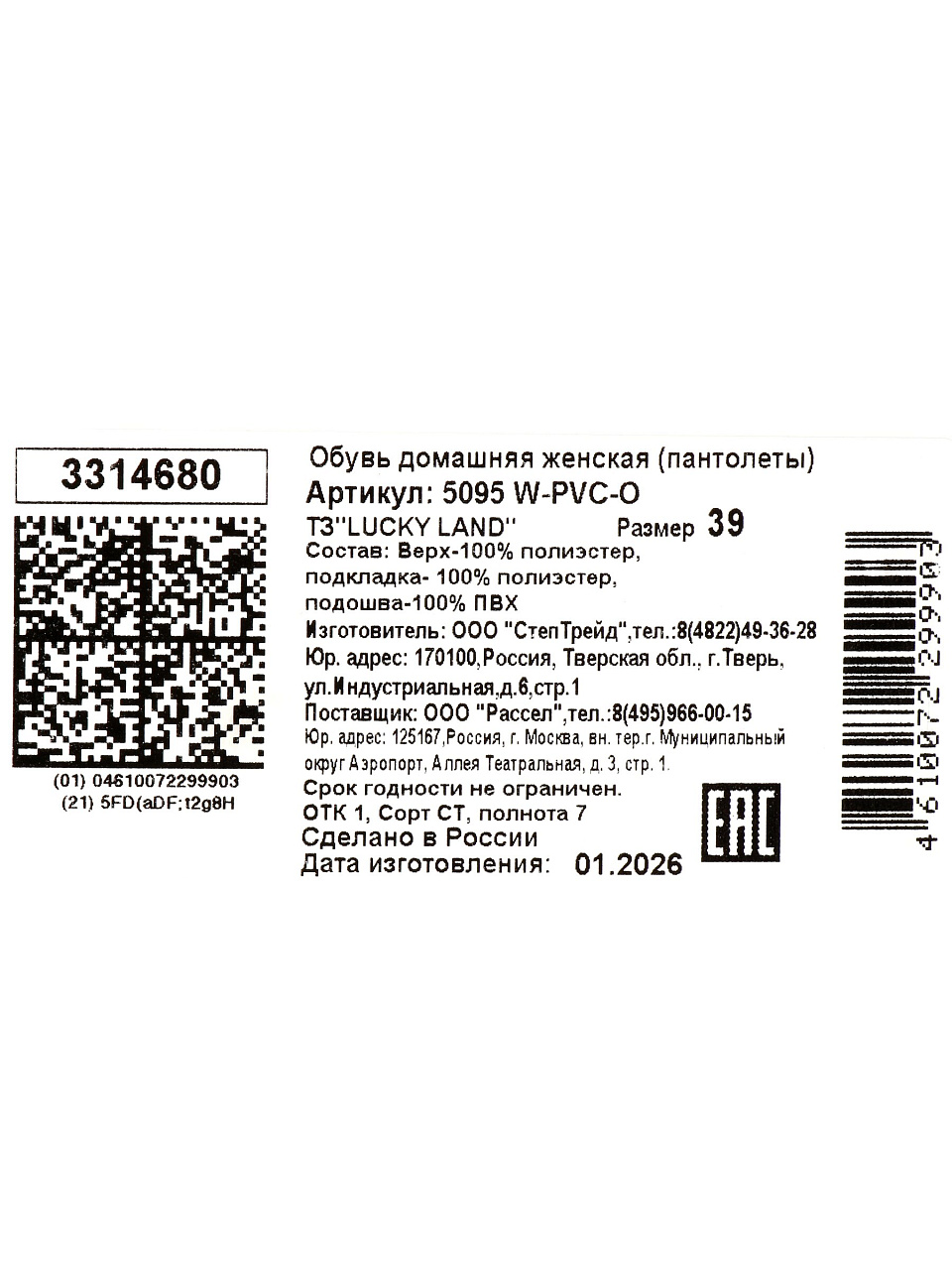 Какой материал у женских тапок Lucky Land 5095W-PVC-O?