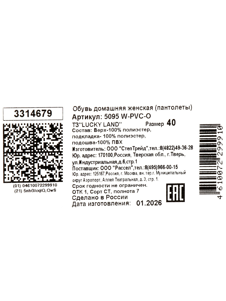 Тапки женские Lucky Land 5095W-PVC-O, размер 40: комфорт для дома и дачи, открытый дизайн, износостойкий полиэстер. Отличный выбор для подарка и повседневной носки.