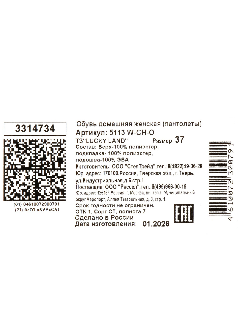 Тапки Lucky Land для женщин — это оптимальное сочетание уюта, легкости и практичности. Благодаря открытой конструкции и мягкому полиэстеру, они обеспечивают естественную вентиляцию и не вызывают перегрева стопы. Если вы ищете, какие тапки выбрать для дома, дачи или в подарок, обратите внимание на модель 5113W-CH-O — она подходит для межсезонья и ежедневного использования.