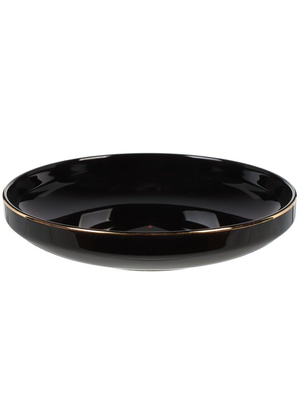 Диаметр 19 см, форма круглая, глубина оптимальна для супов и блюд с подливой. Материал — фарфор, цвет — черный с золотой каймой, коллекция Domenik Black Gold.