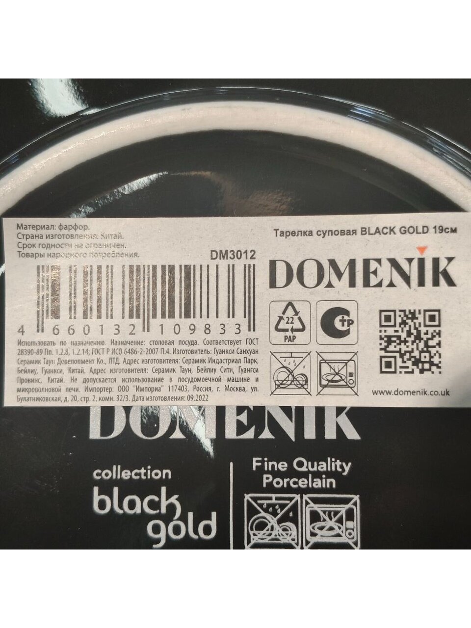 Вы можете приобрести «Тарелка суповая, фарфор, 19 см, круглая, Black Gold, Domenik, DM3012-1» и другие товары в нашем интернет-магазине в Тамбове по низким ценам и с бесплатным самовывозом.