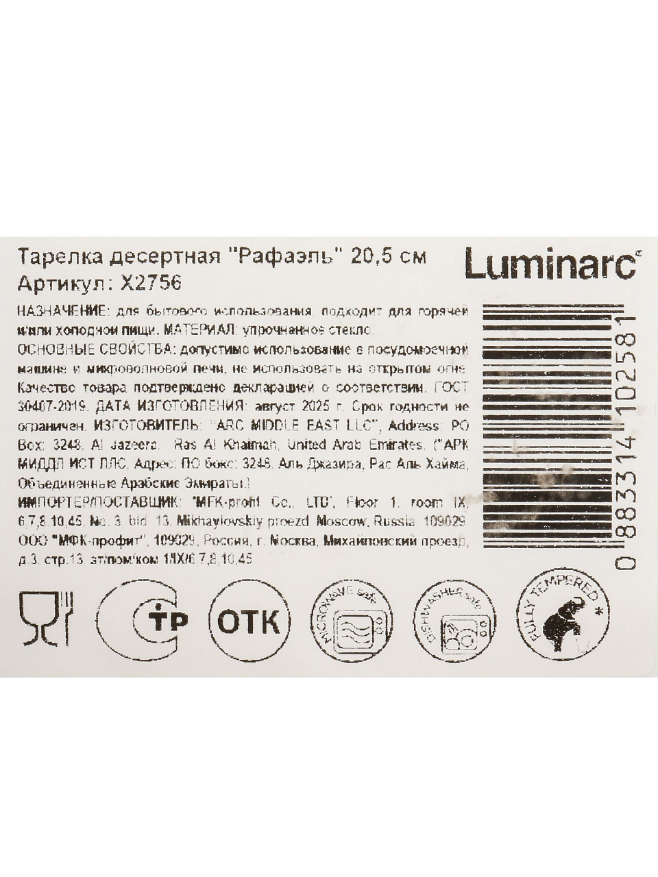 Какой диаметр у тарелки Luminarc Рафаэль?