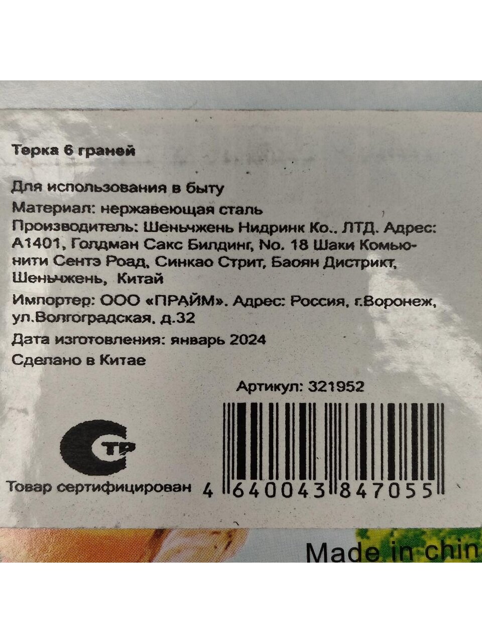 Вы можете приобрести «Терка 6 граней, нержавеющая сталь, Y3-1053» и другие товары в нашем интернет-магазине в Ярославле по низким ценам и с бесплатным самовывозом.