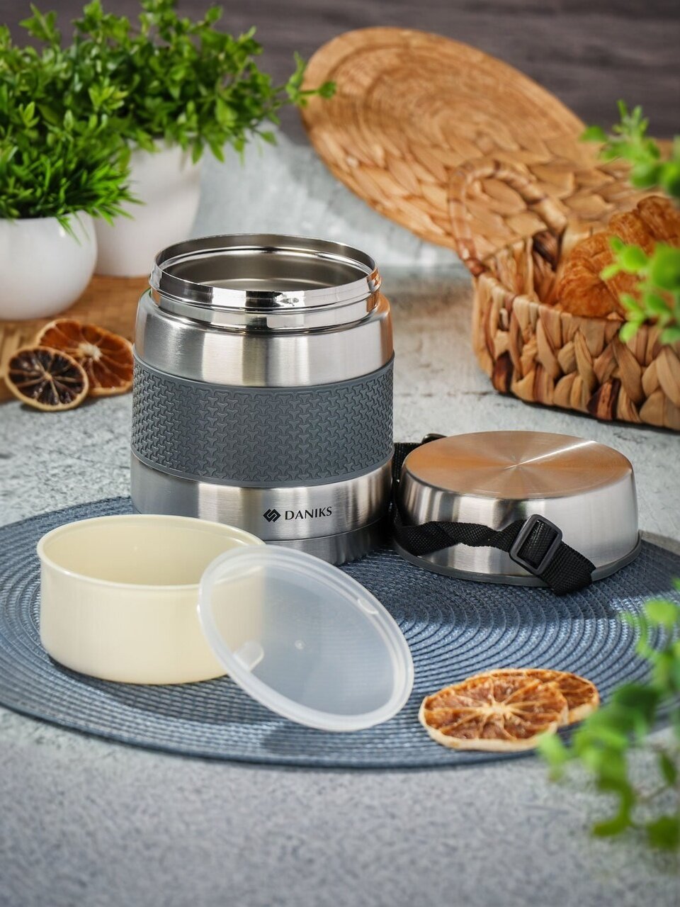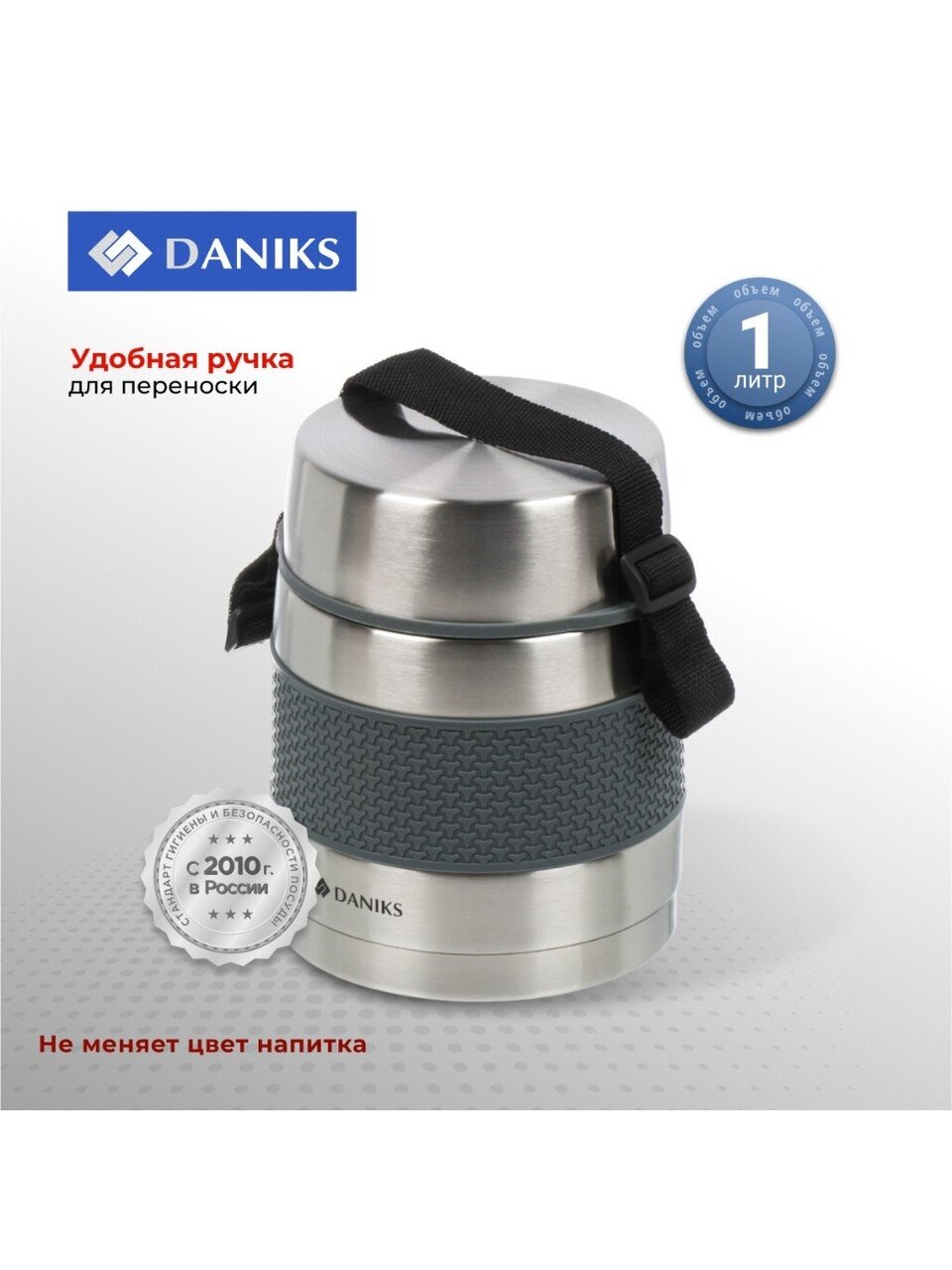 Как использовать термос Daniks? Просто налейте или положите еду, плотно закрутите крышку — тепло или холод сохраняется до 24 часов. Подходит ли для супа, вторых блюд, напитков? Да, благодаря объему 1 л и прочной колбе из стали, термос легко выдерживает ежедневное использование дома, на даче или в путешествиях. Идеальный выбор для тех, кто ценит комфорт и свежесть еды вне дома.