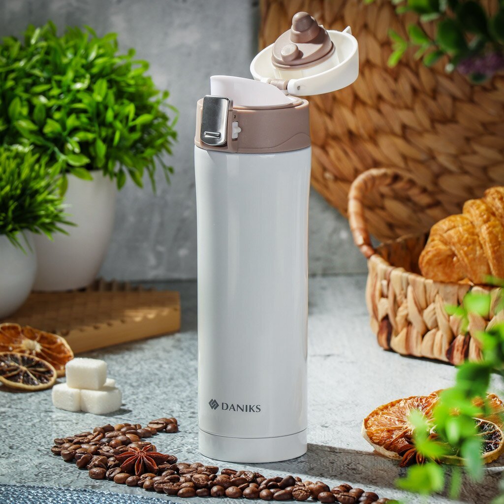 Термос Daniks станет надежным спутником в длительных поездках, на прогулках или во время путешествий. Конструкция термоса выполнена с применением долговечных материалов. Он позволяет сохранить температуру напитка на протяжении длительного времени, что очень удобно во время работы или занятий спортом.