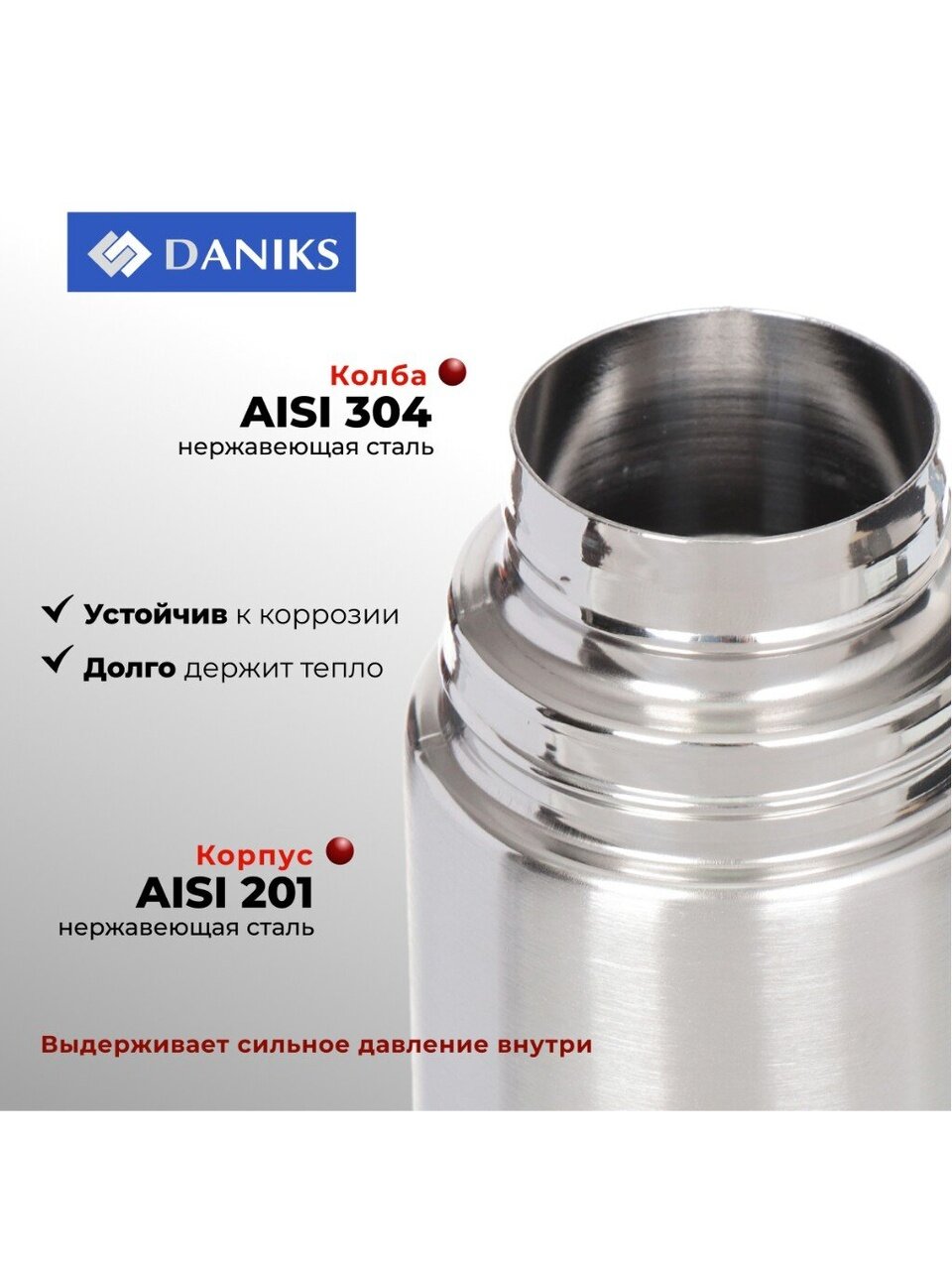 Термос Daniks 0.5 л из нержавеющей стали: держит тепло и холод до 24 часов, подходит для города, авто и дачи. Лучшее сочетание цены и практичности.