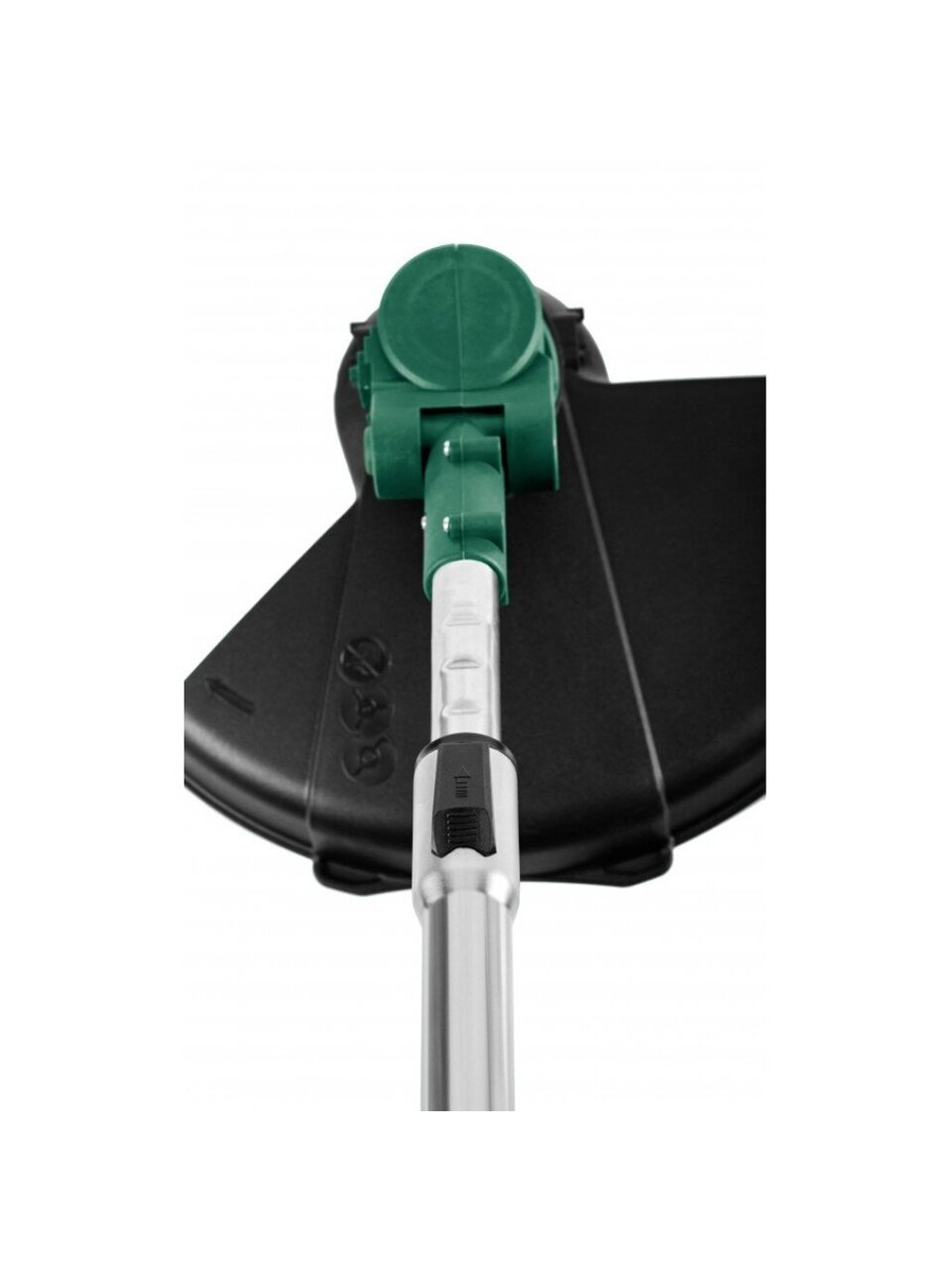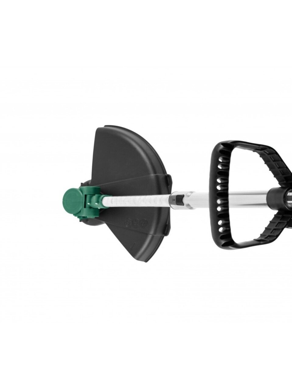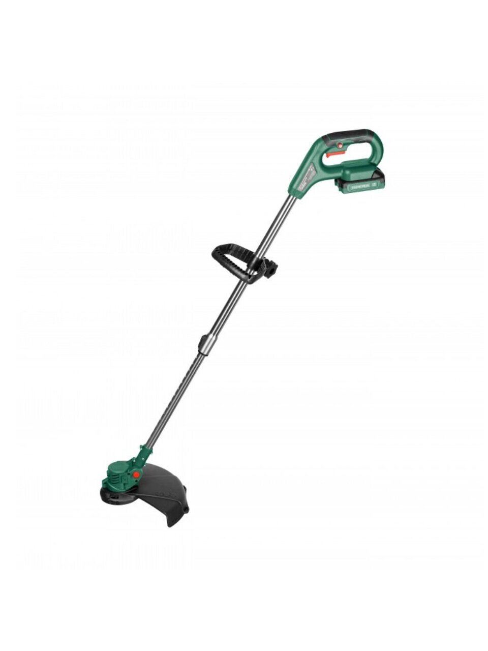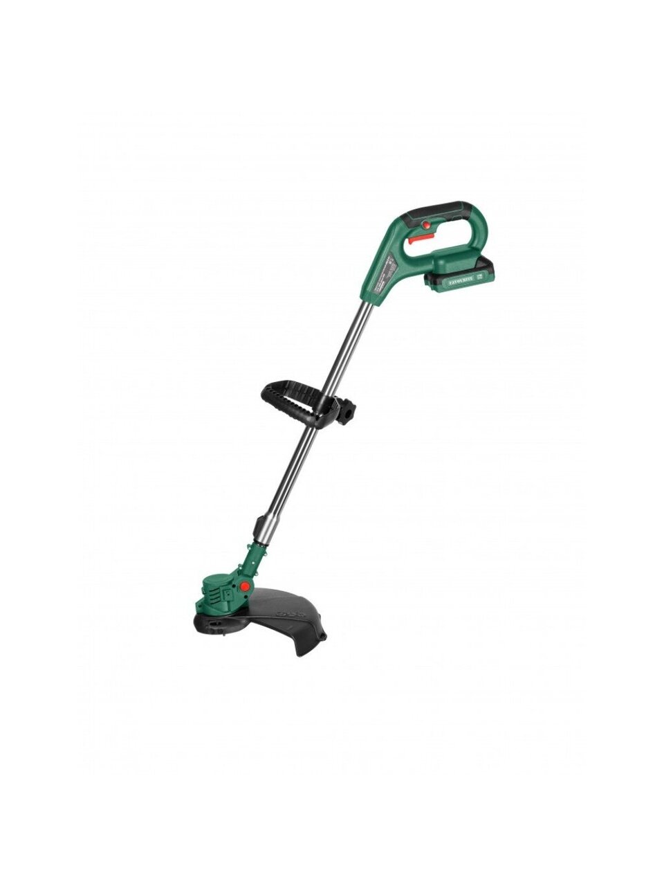 Комплектация: триммер - 1 шт, рукоятка - 1 шт, защитный кожух - 1 шт, катушка триммерная - 1 шт, нож - 1 компл., скоба для защиты растений - 1 шт, набор для сборки - 1 компл., аккумулятор - 1 шт, зарядное устройство - 1 шт, руководство по эксплуатации.