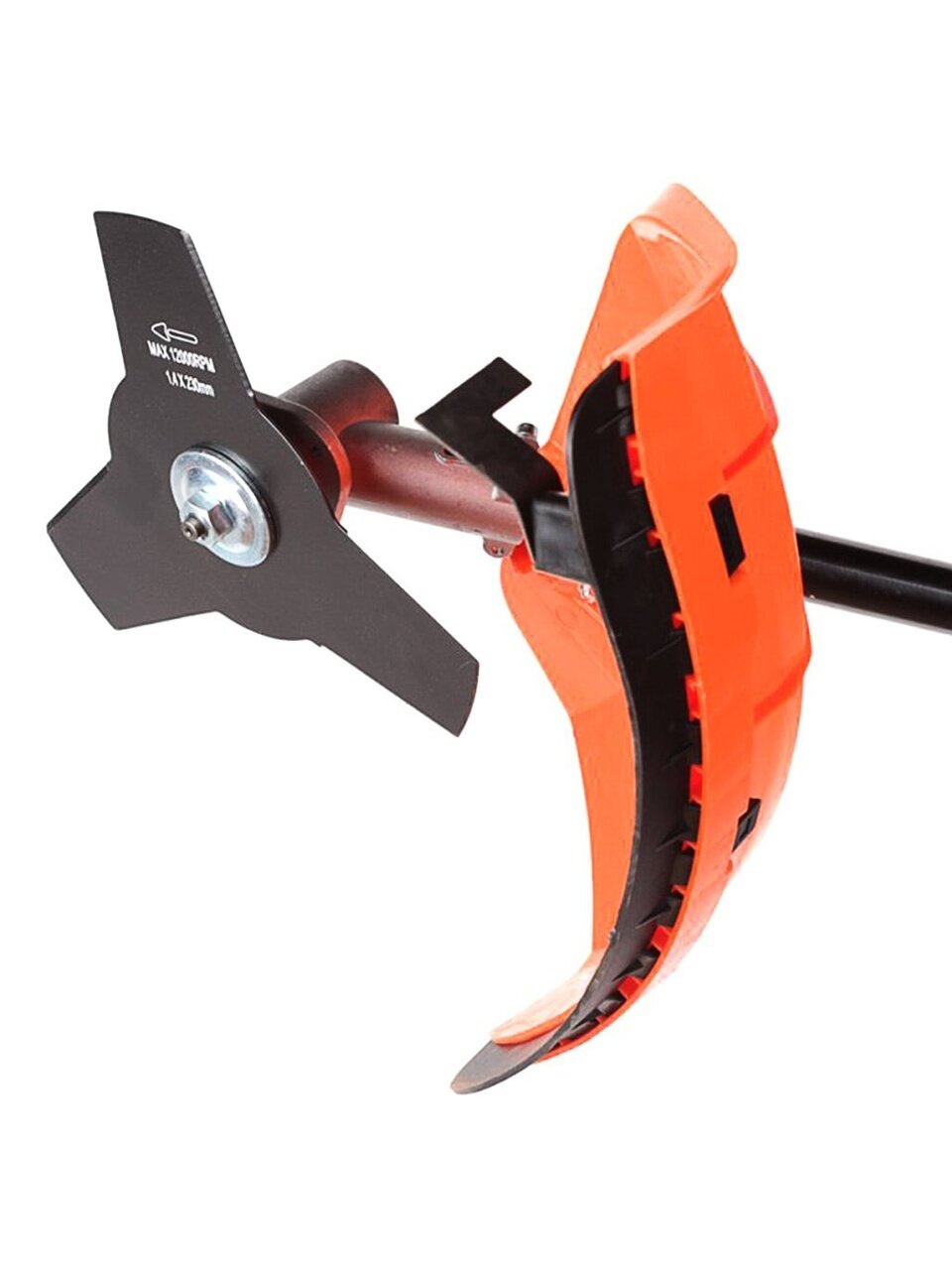 При замене лески на режущий нож применяется для скашивания густой травы, сухостоя, жестких сорняков и небольших кустарников. Все элементы управления встроены в эргономичную рукоятку. Тепловой выключатель предотвращает повреждение двигателя в случае перегрева. Поворотная рукоятка с регулируемой высотой придает максимум комфорта и контроля.