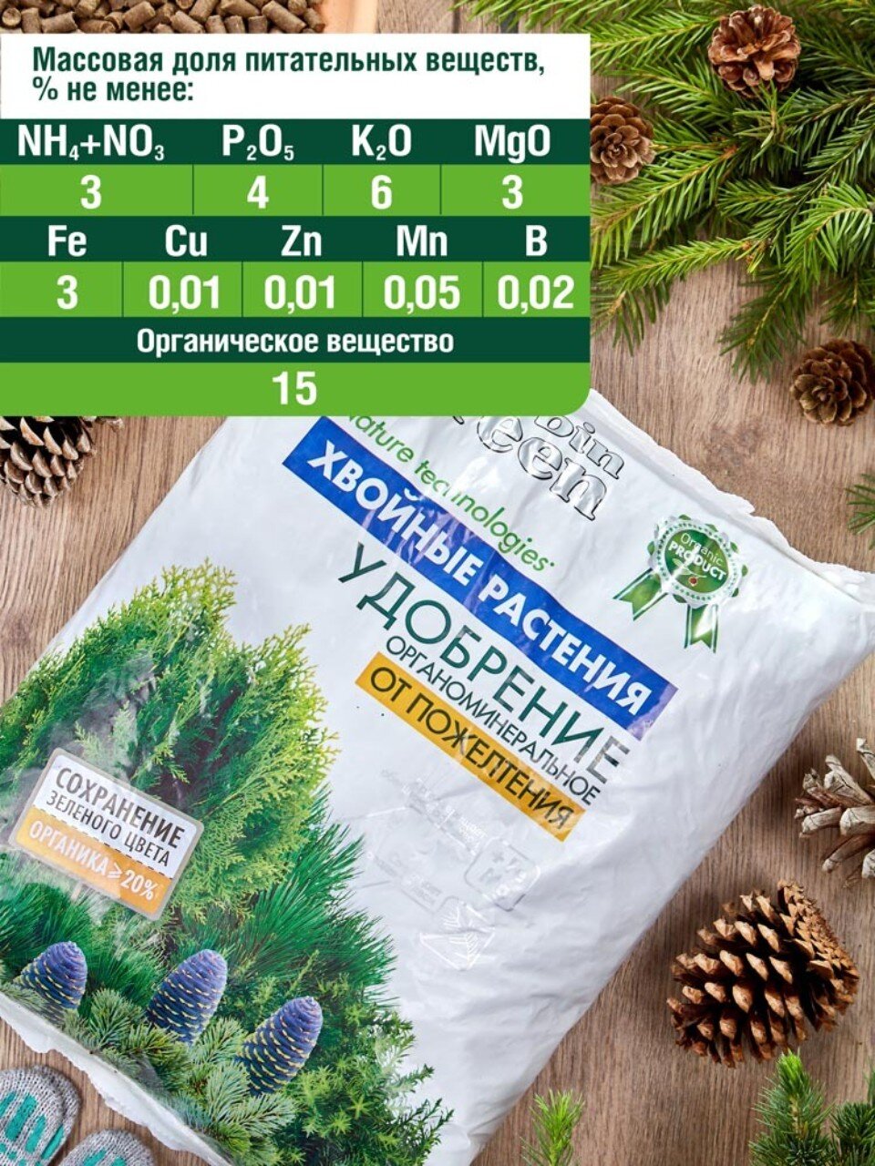 Органоминеральное удобрение Робин Грин — это современное средство для профилактики и лечения пожелтения хвои, которое часто возникает из-за дефицита микроэлементов и стрессов у хвойных растений. Благодаря уникальной формуле с органикой и минеральными компонентами, средство обеспечивает пролонгированное питание и быстрое восстановление зелёного цвета хвои. Такой состав выгодно отличает продукт от чисто минеральных аналогов, поскольку он не только насыщает почву, но и улучшает её структуру, способствуя развитию корневой системы.
