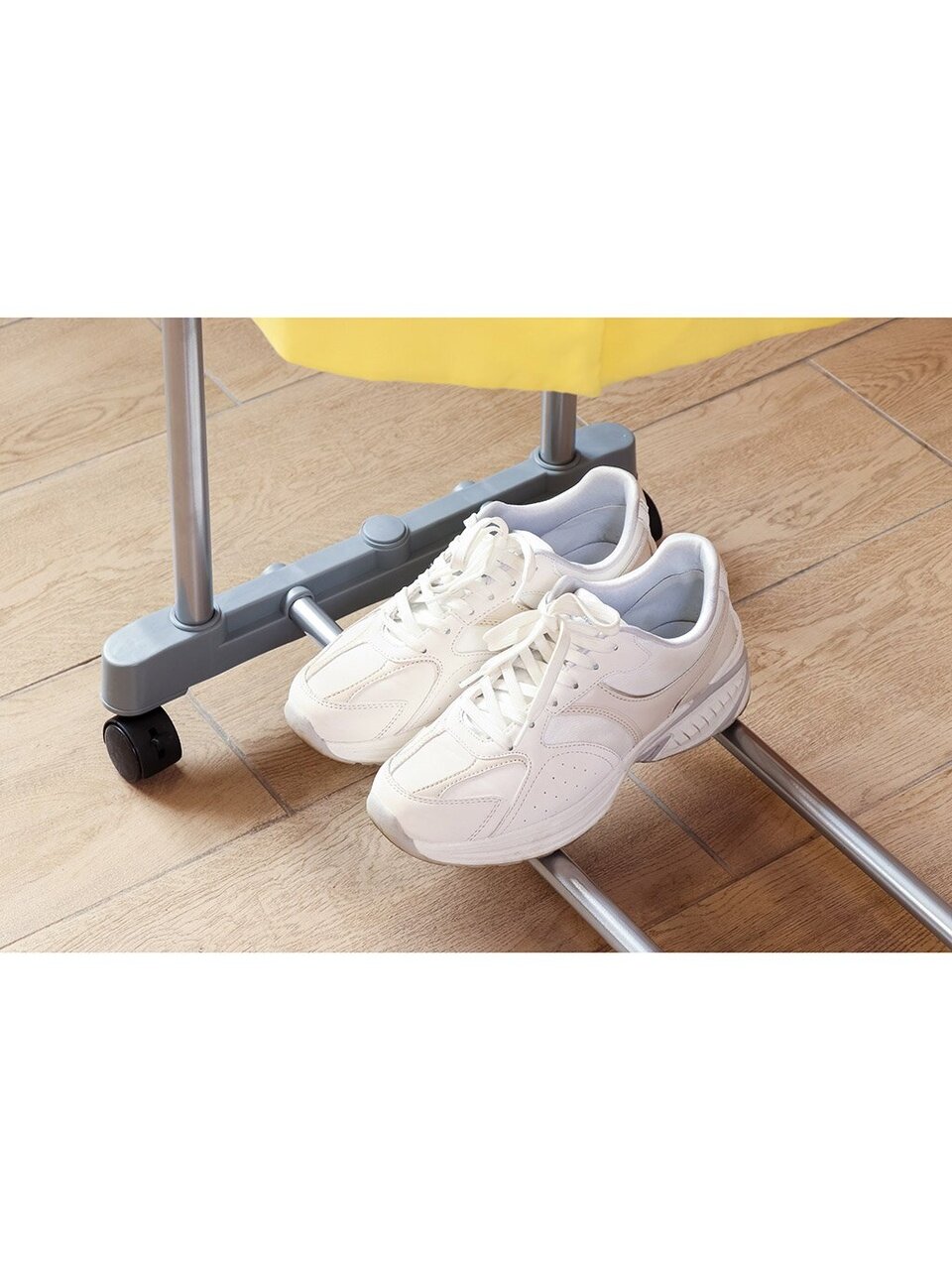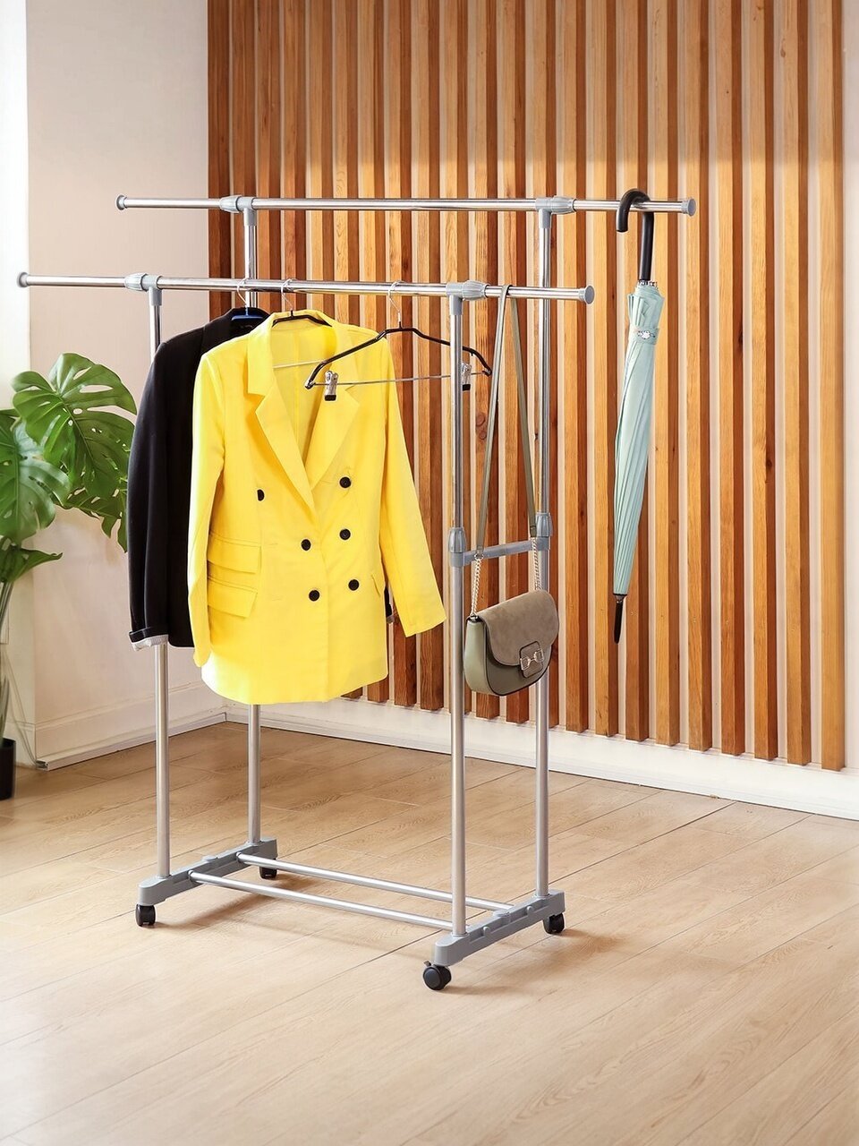- Предусмотрены колесные опоры для легкого передвижения вешалки.