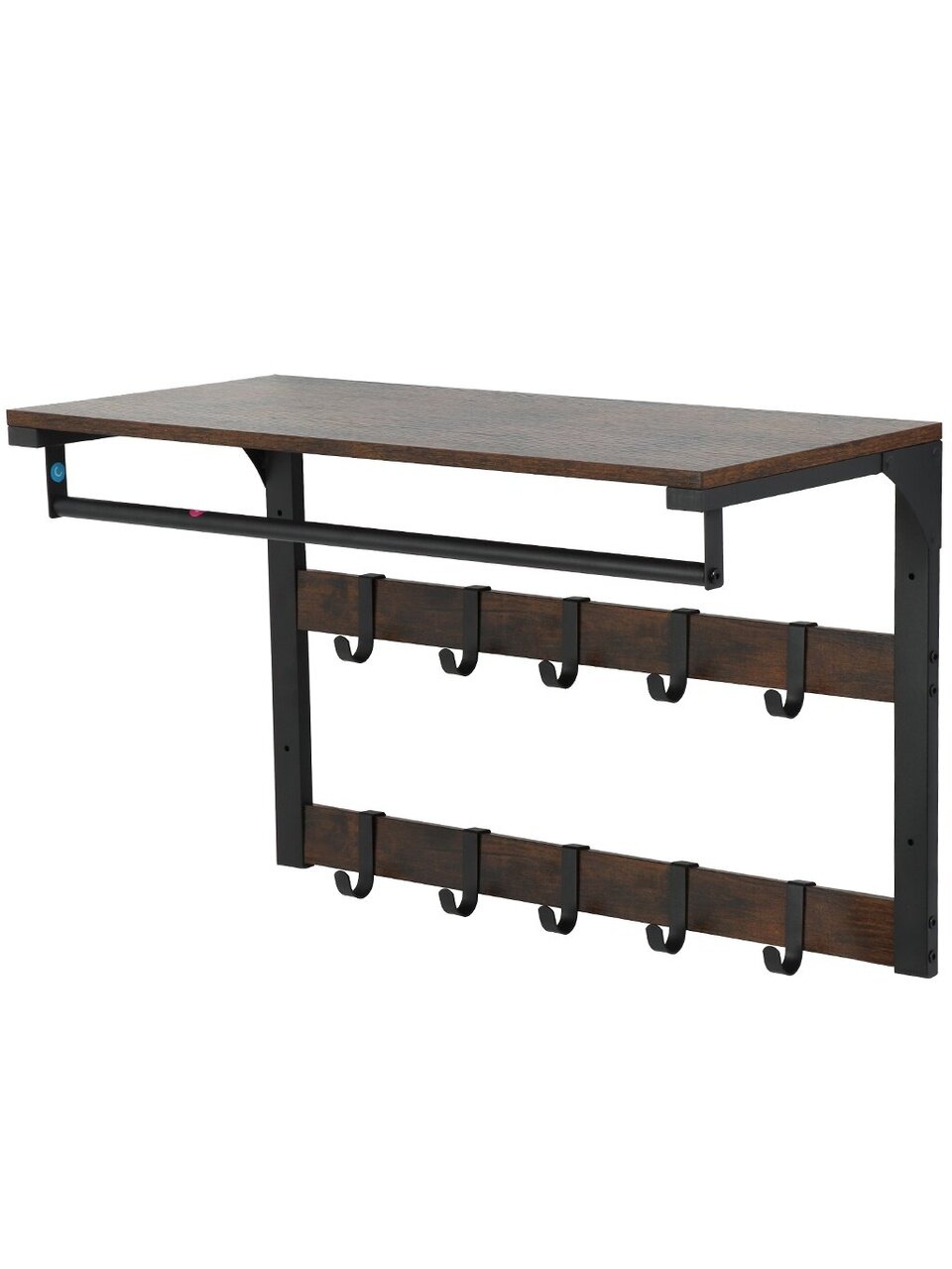 Вы можете приобрести «Вешалка настенная 10 крючков, с полкой, настенная, 65х30х42 см, ДСП, сталь, Лофт, LCR101B01, коричнево-черная» и другие товары в нашем интернет-магазине в Липецке по низким ценам и с бесплатным самовывозом.