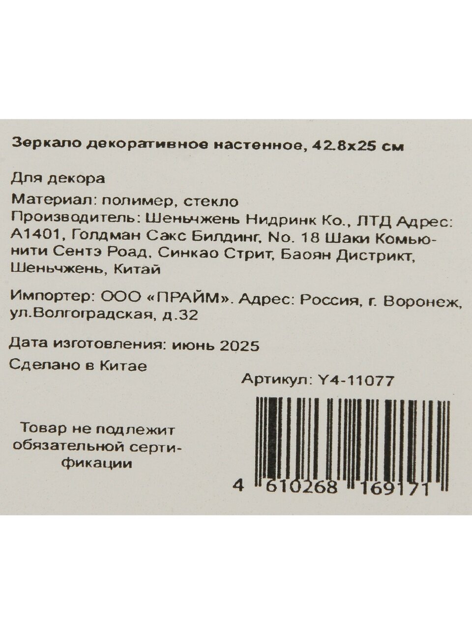 Зеркало декоративное настенное, 42.8х25 см, пластик, черное, Y4-11077